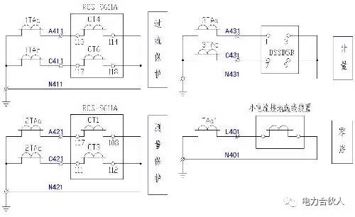 2是電流回路,包括:保護(hù)、測(cè)量、計(jì)量和小電流接地線選擇。保護(hù)裝置和電能表安裝在開(kāi)關(guān)柜上,所有接線均由開(kāi)關(guān)廠連接。小電流接地選線裝置安裝在主控室,零序電流L401和N400需要通過(guò)控制電纜連接到該裝置。