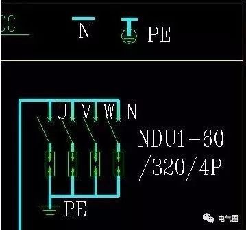 這部分表示PE接地,并且在方框中有一個(gè)零線行。